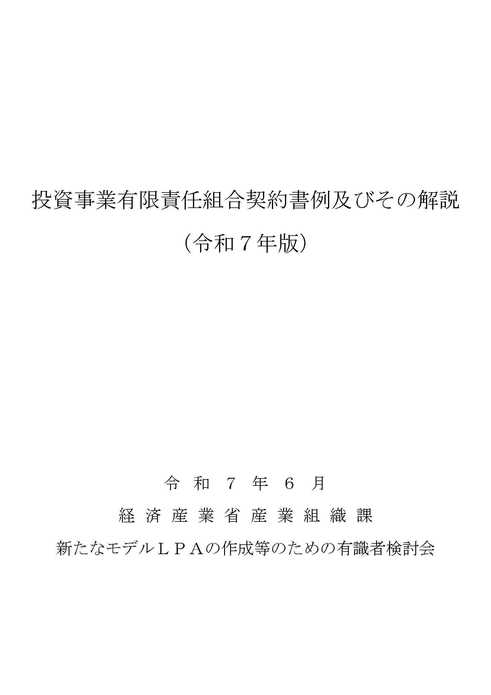 投資事業有限責任組合契約書例及びその解説(令和7年版)| 経済産業省ウェブサイト