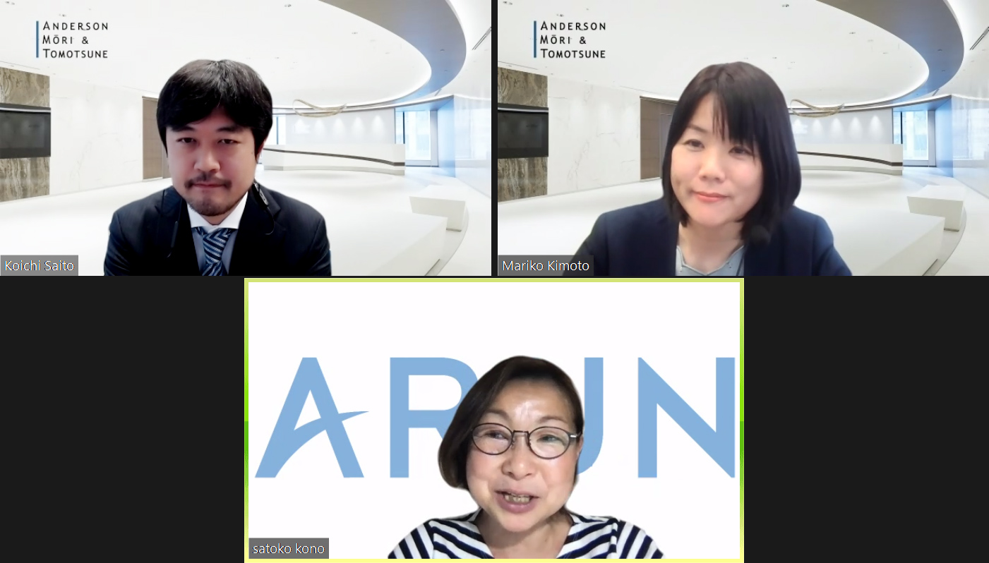(NPO法人ARUN Seed 代表・功能聡子氏×パートナー弁護士・齋藤宏一&アソシエイト弁護士・木本真理子)